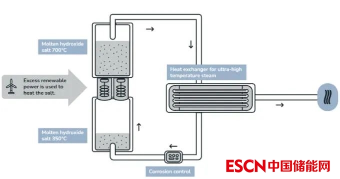 值得關(guān)注的是,Hyme公司的氫氧化物熔鹽儲熱系統(tǒng)基于其專有的腐蝕控制技術(shù),該項目將成為世界上第一個部署熔融氫氧化物熔鹽的儲熱設(shè)施。當(dāng)前市場上的熔鹽儲熱系統(tǒng)基本上都采用的是硝酸鹽,氫氧化物熔鹽的腐蝕性是一個難題,Hyme稱其掌握了一種專利技術(shù)可以解決腐蝕問題,該公司顯然是要改變?nèi)埯}儲能的現(xiàn)有游戲規(guī)則。