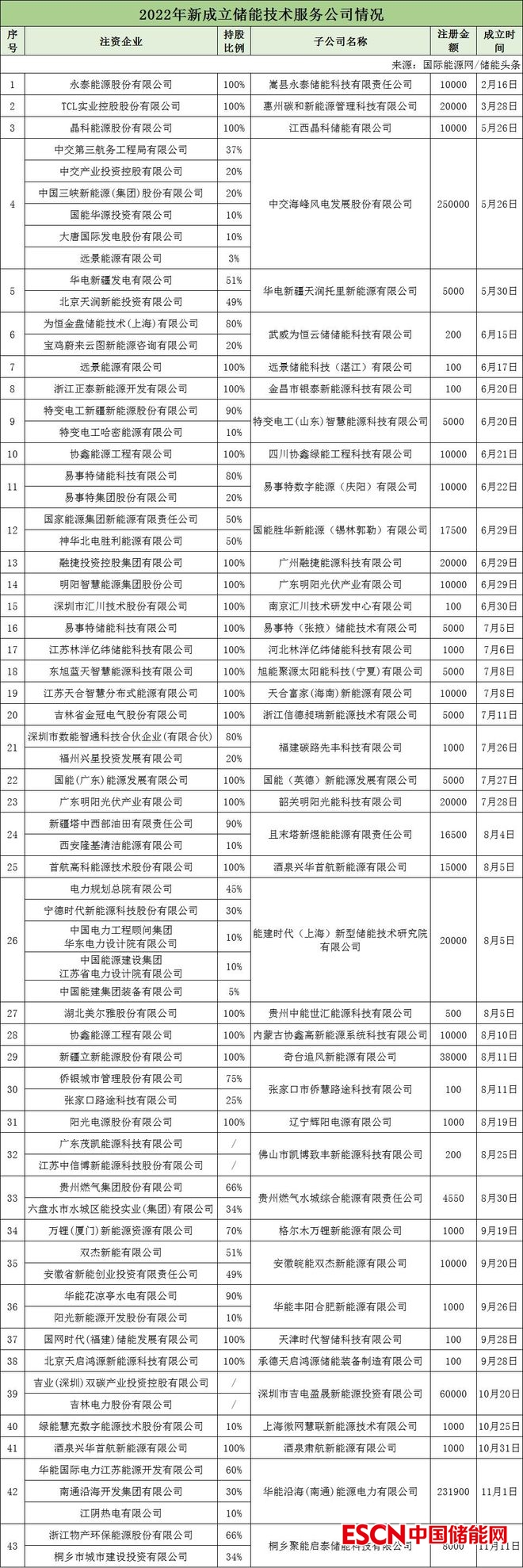 據(jù)不完全統(tǒng)計,今年以來已有43家儲能技術(shù)服務(wù)新公司注冊成立,注冊金額高達84億元。