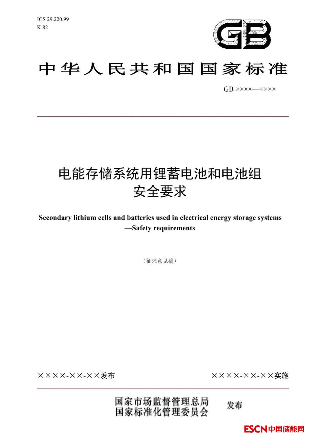 公開征求對《電能存儲系統(tǒng)用鋰蓄電池和電池組安全要求》等3項強制性國家標準(征求意見稿)的意見