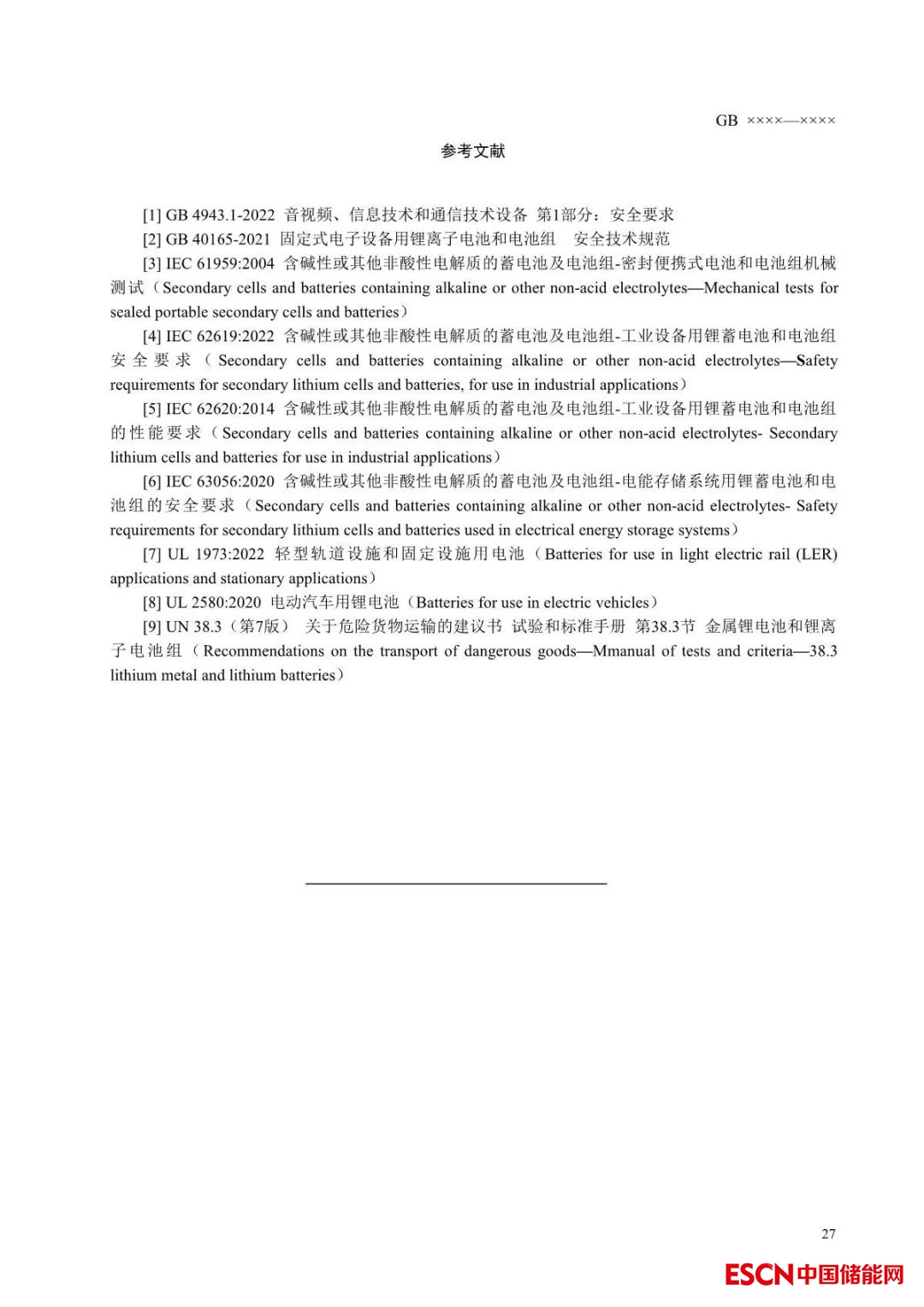 根據(jù)國家標準委下達的強制性國家標準制修訂計劃,工業(yè)和信息化部組織完成了《電能存儲系統(tǒng)用鋰蓄電池和電池組安全要求》等3項強制性國家標準(征求意見稿)的編制工作(見附件1)。為進一步聽取社會各界意見,現(xiàn)對標準征求意見稿及編制說明(見附件2)予以公示,截止日期2023年1月18日。