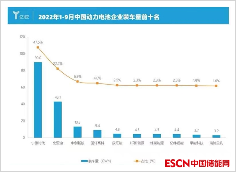 2018年,公司僅以1.4%的市占率排名第九,而到了2021年,中創(chuàng)新航國內(nèi)裝機(jī)量占比便達(dá)到5.9%,排名僅次于寧德時(shí)代和比亞迪。最新的數(shù)據(jù)顯示,2022年前三季度,中創(chuàng)新航以6.9%的市占率繼續(xù)位居國內(nèi)第三。