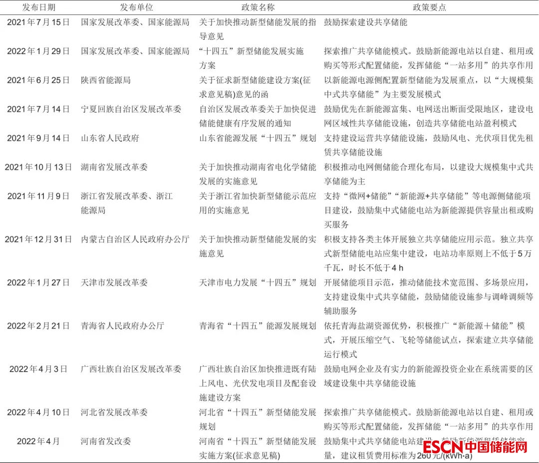 從共享儲(chǔ)能實(shí)踐來(lái)看,青海、山東、河南等省走在全國(guó)前列。青海在國(guó)內(nèi)率先提出共享儲(chǔ)能這一概念,構(gòu)建了儲(chǔ)能和新能源發(fā)電企業(yè)之間的市場(chǎng)化交易機(jī)制;山東從新型儲(chǔ)能應(yīng)用的頂層設(shè)計(jì)入手,通過(guò)健全政策和市場(chǎng)機(jī)制、開(kāi)展示范項(xiàng)目建設(shè),探索出具有山東特色的“共享儲(chǔ)能”創(chuàng)新模式,引領(lǐng)2021年全國(guó)儲(chǔ)能市場(chǎng)的發(fā)展;河南最新的《“十四五”新型儲(chǔ)能實(shí)施方案(征求意見(jiàn)稿)》明確提出了2022年集中共享式電化學(xué)儲(chǔ)能容量租賃參考價(jià)格為260元/(kWh?a),是全國(guó)首次政策制定層面提出電化學(xué)儲(chǔ)能容量租賃參考價(jià)格。