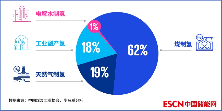 目前我國(guó)比較成熟的常用制氫技術(shù)包括煤制氫(灰氫)、天然氣制氫(灰氫)、工業(yè)副產(chǎn)制氫(藍(lán)氫)和電解水制氫(綠氫)。據(jù)統(tǒng)計(jì),2020年我國(guó)共制氫2500萬(wàn)噸,其中煤制氫占比高達(dá)62%,天然氣制氫為19%,工業(yè)副產(chǎn)制氫為18%,電解水制氫為1%。