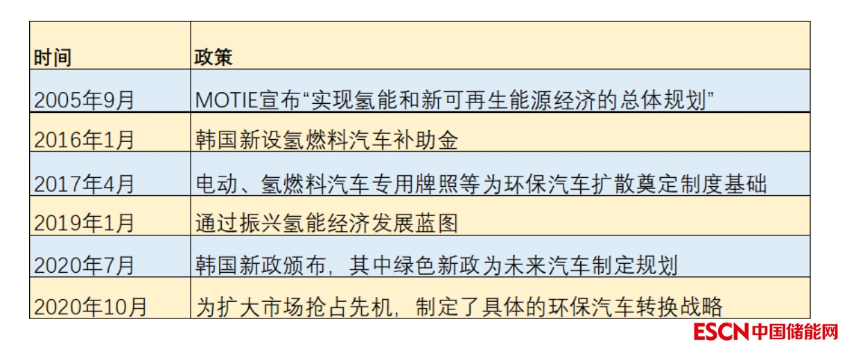 2020年2月國(guó)民議會(huì)通過(guò)《氫能法》,以期建立一個(gè)法律框架;2020年7月,韓國(guó)新政頒布,其中綠色新政為未來(lái)汽車(chē)制定規(guī)劃;2020年10月,為擴(kuò)大市場(chǎng)搶占先機(jī),制定了具體的環(huán)保汽車(chē)轉(zhuǎn)換戰(zhàn)略。