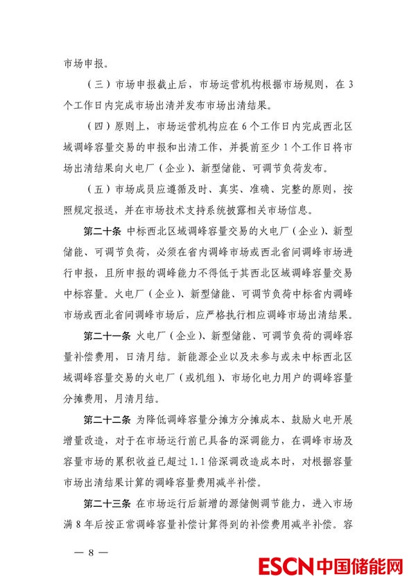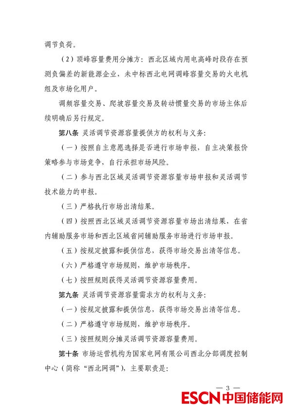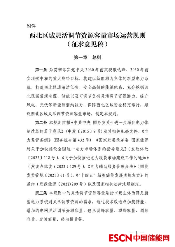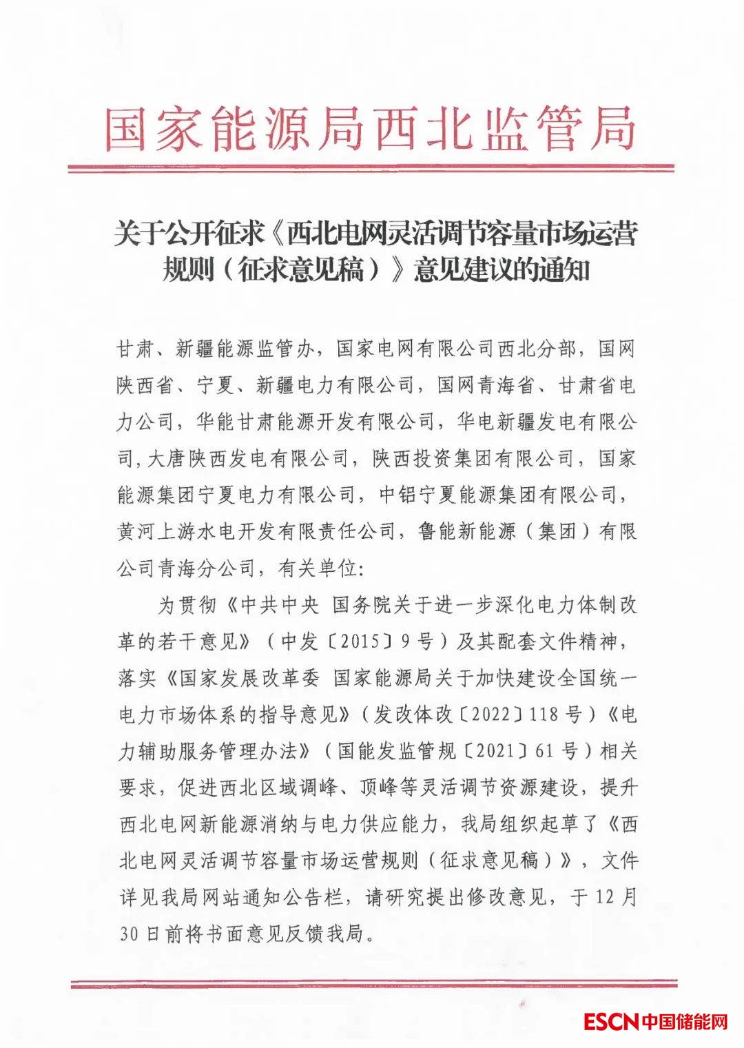 中國(guó)儲(chǔ)能網(wǎng)訊:12月1日,國(guó)家能源局西北監(jiān)管局發(fā)布關(guān)于公開(kāi)征求《西北電網(wǎng)靈活調(diào)節(jié)容量市場(chǎng)運(yùn)營(yíng)規(guī)則(征求意見(jiàn)稿)》意見(jiàn)建議的通知。其中,文件表示,為貫徹落實(shí)黨中央 2030 年前實(shí)現(xiàn)碳達(dá)峰、2060 年前實(shí)現(xiàn)碳中和的重大戰(zhàn)略目標(biāo),構(gòu)建以新能源為主體的新型電力系統(tǒng),打造西北區(qū)域清潔低碳、安全高效的能源體系,充分挖掘西北區(qū)域常規(guī)電源、儲(chǔ)能以及可調(diào)節(jié)負(fù)荷靈活調(diào)節(jié)資源潛力,提升風(fēng)電、光伏等新能源消納能力,保障西北區(qū)域安全穩(wěn)定運(yùn)行,建設(shè)西北區(qū)域靈活調(diào)節(jié)資源容量市場(chǎng)。