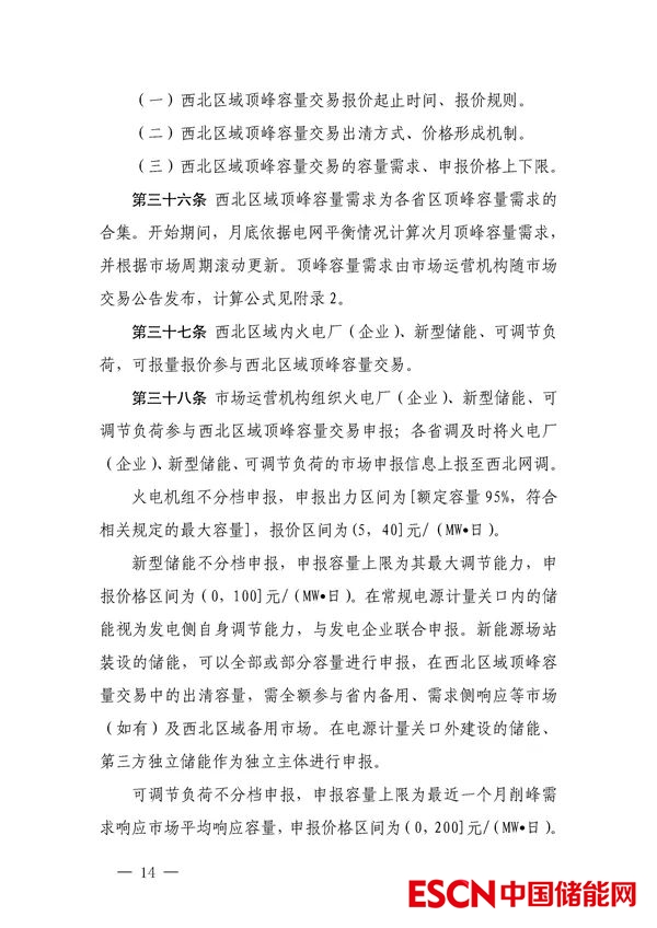 (1)調(diào)峰容量提供方:西北區(qū)域內(nèi)火電機(jī)組、新型儲(chǔ)能、可調(diào)節(jié)負(fù)荷。