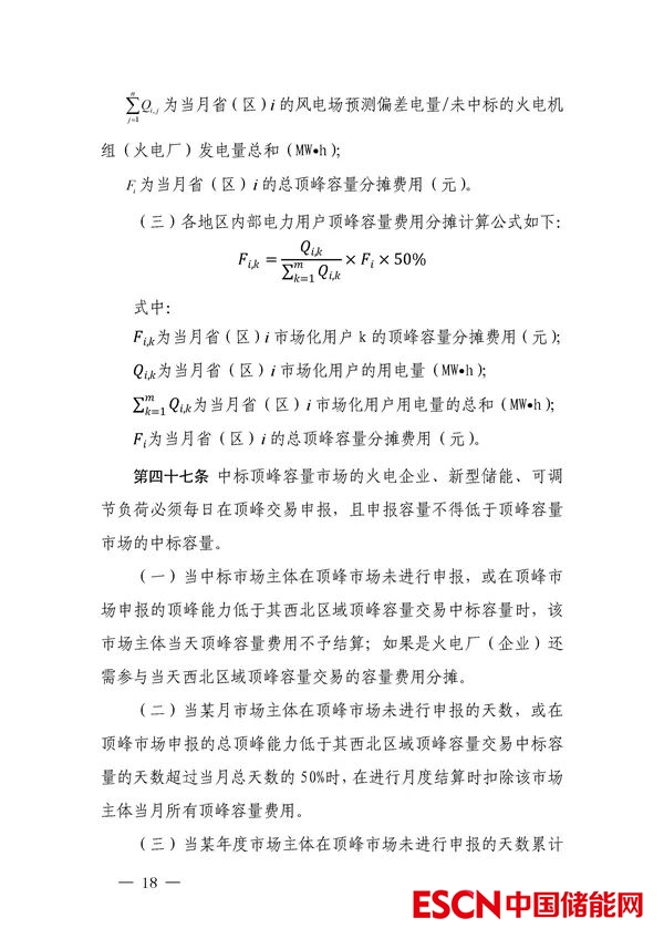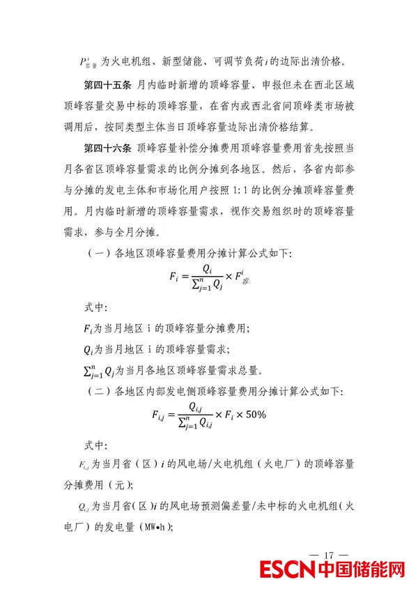 (2)頂峰容量費(fèi)用分?jǐn)偡剑何鞅眳^(qū)域內(nèi)用電高峰時(shí)段存在預(yù)測(cè)負(fù)偏差的新能源企業(yè),未中標(biāo)西北電網(wǎng)調(diào)峰容量交易的火電機(jī)組及市場(chǎng)化用戶。