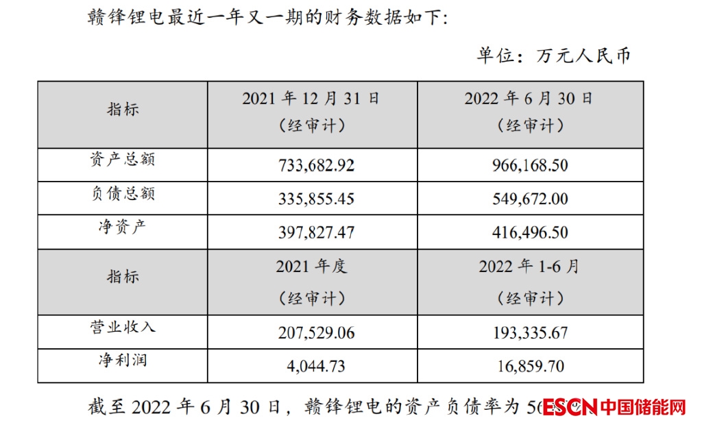 截至上半年底,贛鋒鋰電賬面總資產(chǎn)96.6億元,凈資產(chǎn)41.6億元,資產(chǎn)負(fù)債率為57%;2022年上半年公司實現(xiàn)營收19.33億元、實現(xiàn)凈利潤1.69億元。