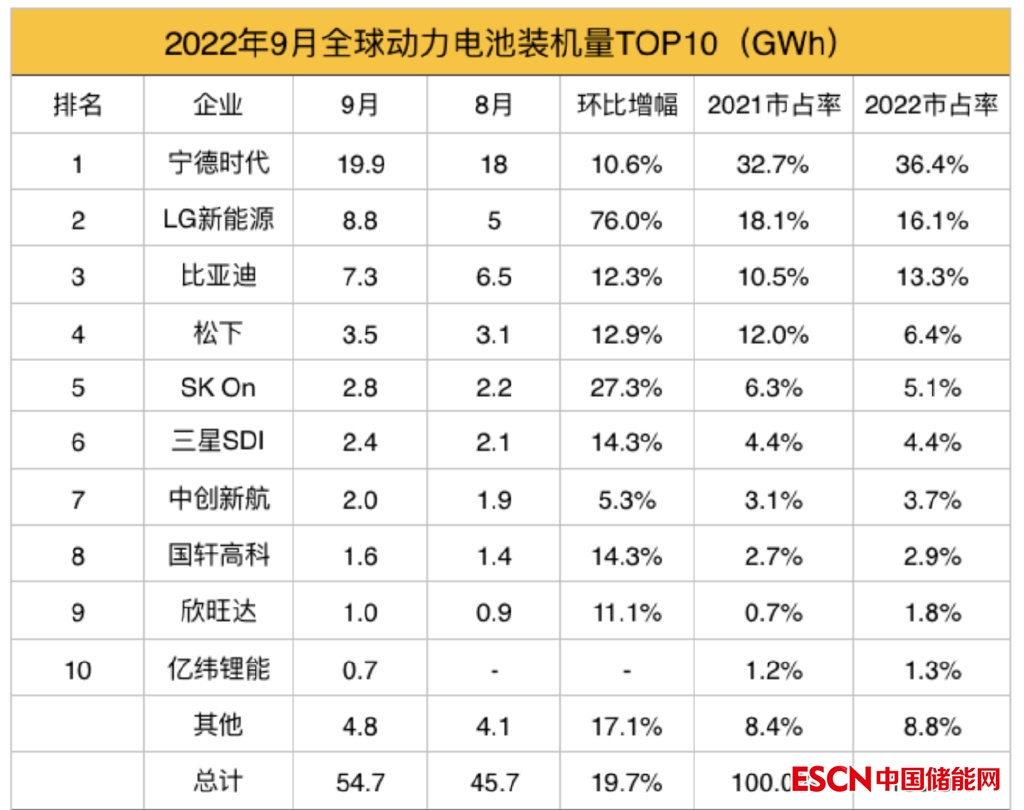韓國市場研究機構(gòu)SNE Research數(shù)據(jù)顯示,9月全球動力電池裝機量54.7GWh,環(huán)比上漲19.7%,同比增長超1.6倍。