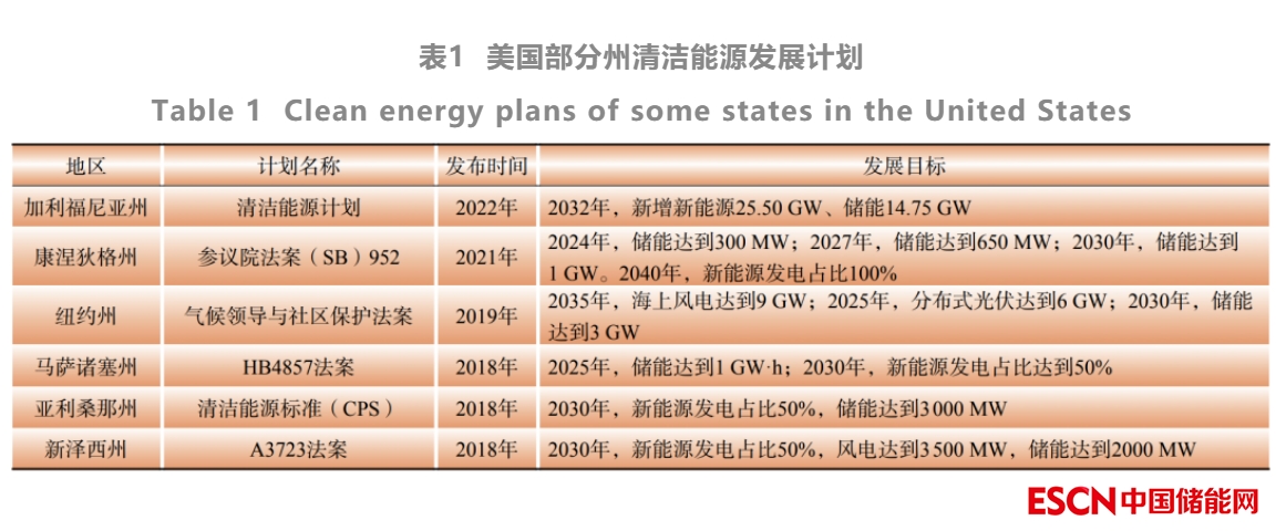 美國多個(gè)州制定了清潔能源發(fā)展計(jì)劃,明確了儲(chǔ)能發(fā)展目標(biāo),如表1所示。以加利福尼亞州為例,2022年2月,其公共事業(yè)委員會(huì)(CPUC)批準(zhǔn)了一項(xiàng)長期清潔能源計(jì)劃,提出到2032年新增新能源25.50 GW、儲(chǔ)能14.75 GW。儲(chǔ)能新增規(guī)模達(dá)到新能源新增規(guī)模的58%[10]。同時(shí),加利福尼亞州通過自上而下的采購指令,要求PG&E、SCE、SDG&E等公用事業(yè)公司部署電池儲(chǔ)能系統(tǒng),以推動(dòng)儲(chǔ)能發(fā)展目標(biāo)的實(shí)現(xiàn)。