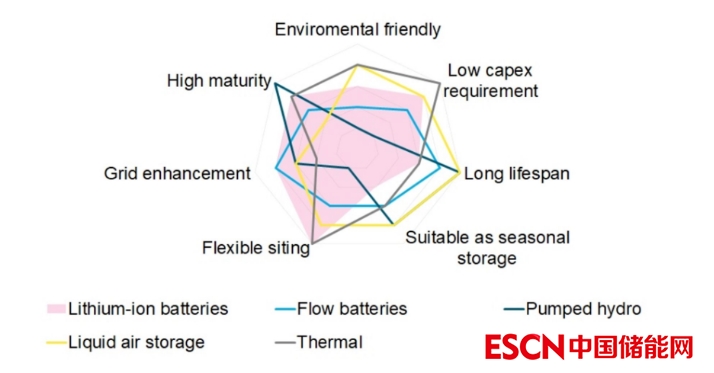 當(dāng)前,多種長(zhǎng)時(shí)儲(chǔ)能技術(shù)競(jìng)相出現(xiàn),主要有機(jī)械儲(chǔ)能、化學(xué)儲(chǔ)能、熱儲(chǔ)能和電化學(xué)儲(chǔ)能這四類,電化學(xué)儲(chǔ)能是目前最具競(jìng)爭(zhēng)力的儲(chǔ)能技術(shù)。電化學(xué)儲(chǔ)能中,鋰離子電池因具有高能量密度、高功率密度和高往返效率,在電動(dòng)汽車領(lǐng)域廣泛應(yīng)用,其成本與儲(chǔ)能時(shí)長(zhǎng)呈線性關(guān)系,4小時(shí)持續(xù)放電時(shí)間如今是大規(guī)模鋰離子電池儲(chǔ)能系統(tǒng)的成本效益上限,當(dāng)時(shí)長(zhǎng)超過4小時(shí),鋰離子可能不是最具成本效益的電化學(xué)技術(shù)。為了實(shí)現(xiàn)更具經(jīng)濟(jì)效益的長(zhǎng)時(shí)儲(chǔ)能,低成本、性能低下的金屬-空氣電池或已經(jīng)使能量和電力組件成本脫鉤的液流電池可能更適合用于長(zhǎng)時(shí)儲(chǔ)能。