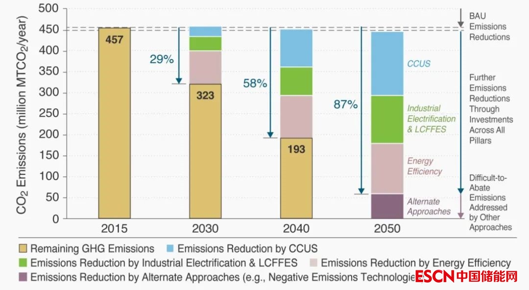 圖5 美國(guó)碳密集型重點(diǎn)行業(yè)到2050年實(shí)現(xiàn)凈零排放的關(guān)鍵途徑