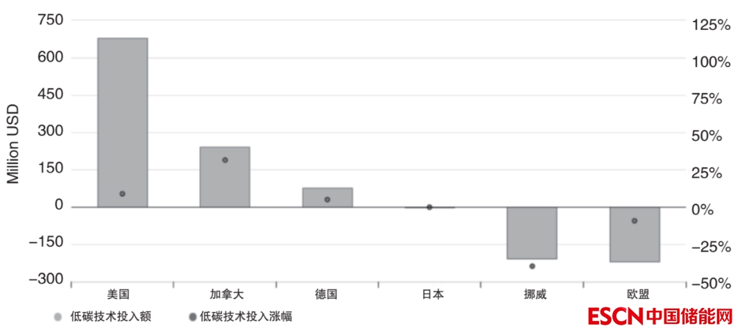 圖2 2020年IEA主要成員國(guó)和歐盟低碳技術(shù)RD&D投入情況
