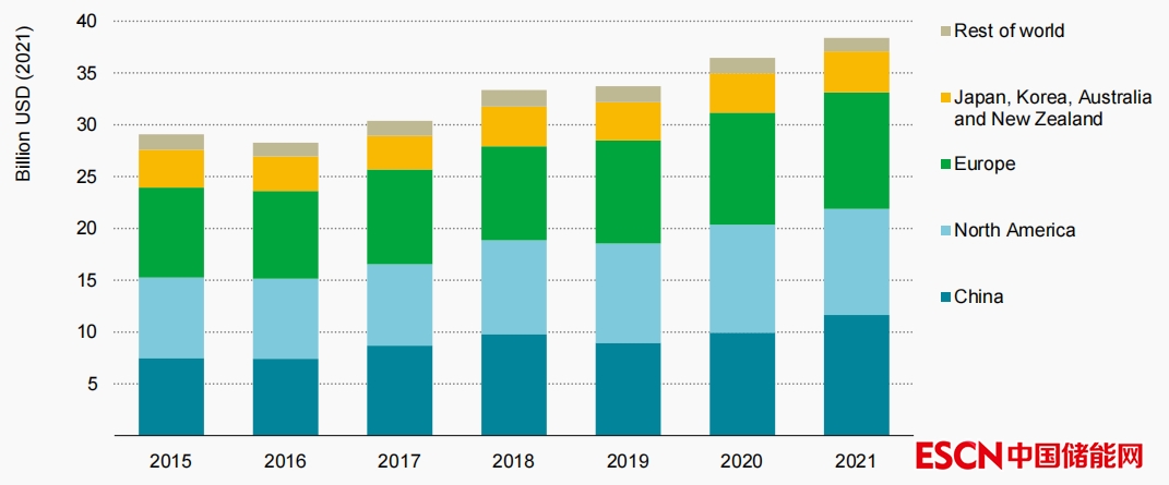 圖1 2015—2021年全球主要經(jīng)濟(jì)體能源技術(shù)RD&D投入情況