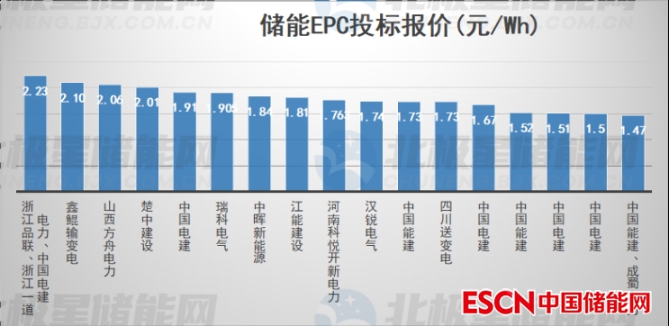 共有10個(gè)100MWh以上儲(chǔ)能項(xiàng)目EPC總承包開(kāi)標(biāo),其中規(guī)模最大的是新疆阜康市60萬(wàn)千瓦光伏+60萬(wàn)千瓦時(shí)儲(chǔ)能項(xiàng)目EPC,該項(xiàng)目按25%/4h配置儲(chǔ)能系統(tǒng),儲(chǔ)能總?cè)萘繛?50MW/600MWh,是目前國(guó)內(nèi)新能源側(cè)儲(chǔ)能規(guī)模最大的項(xiàng)目。此次EPC招標(biāo)內(nèi)容不包含光伏及儲(chǔ)能設(shè)備采購(gòu),最終由水電十一局與中國(guó)電建中南院聯(lián)合體中標(biāo),其投標(biāo)價(jià)10.07億元。