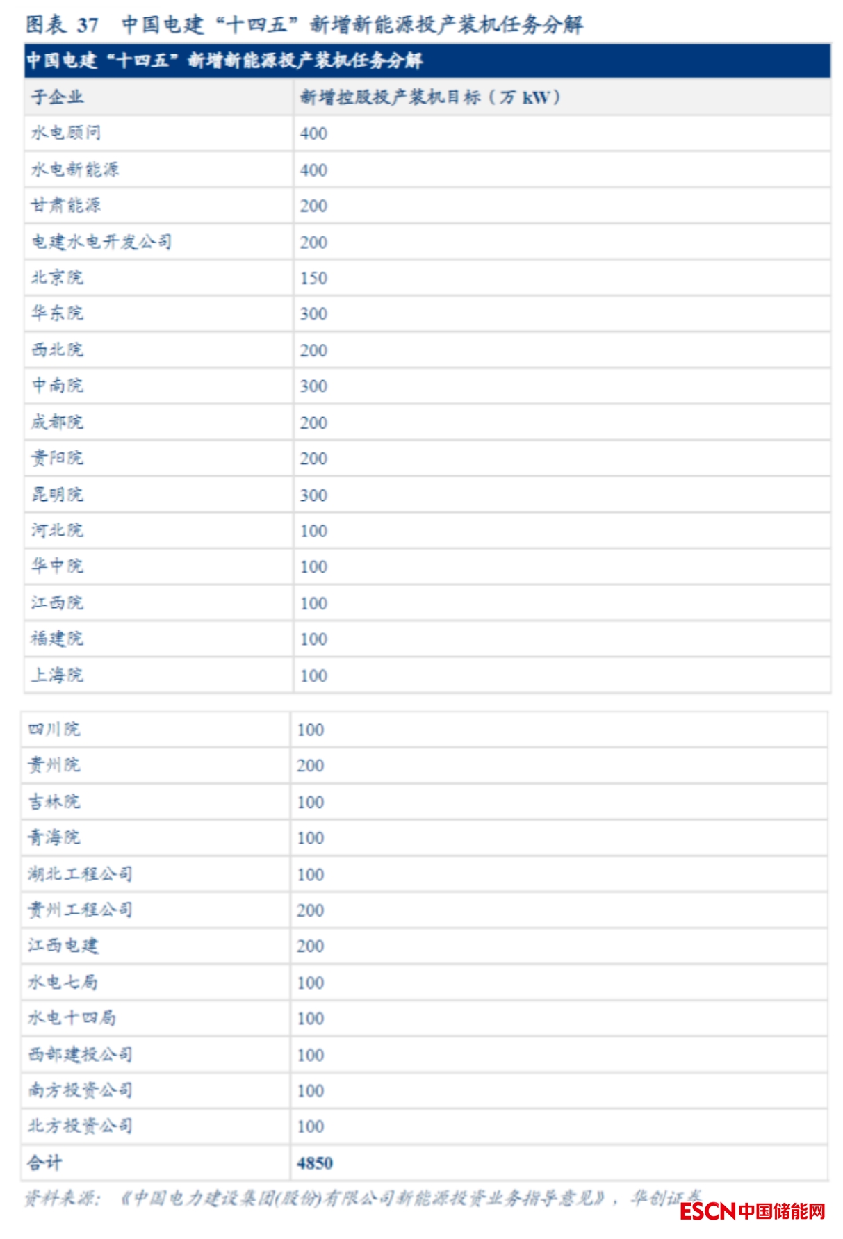 2021年初,根據(jù)中國電建印發(fā)《中國電力建設(shè)集團(tuán)(股份)有限公司新能源投資業(yè)務(wù)指導(dǎo)意見》,公司預(yù)計將于“十四五”期間在境內(nèi)外新增控股投產(chǎn)風(fēng)光電裝機(jī)容量3000萬千瓦。根據(jù)文件對下屬28個企業(yè)分解的新能源投產(chǎn)裝機(jī)任務(wù)來看,合計的新增規(guī)模將達(dá)4850萬千瓦。這是中國電建首次明確大力發(fā)展新能源投資運(yùn)營業(yè)務(wù),進(jìn)一步放寬集團(tuán)下屬企業(yè)新能源項目投資主體范圍。