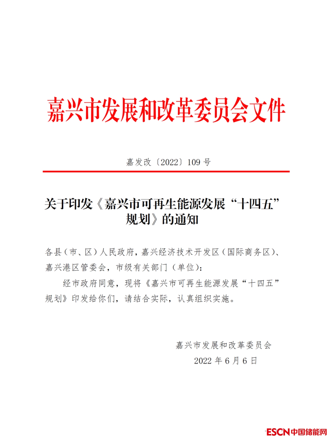 中國(guó)儲(chǔ)能網(wǎng)訊:近日,浙江省嘉興市發(fā)改委印發(fā)《嘉興市可再生能源發(fā)展“十四五”規(guī)劃》。