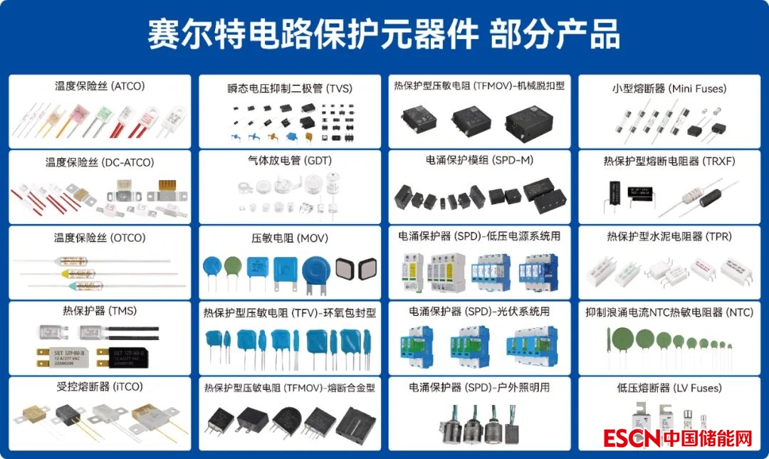 在儲能領(lǐng)域,賽爾特可提供多種電路安全保護元器件,解決儲能系統(tǒng)的熱故障及電氣故障。具體產(chǎn)品分別是: