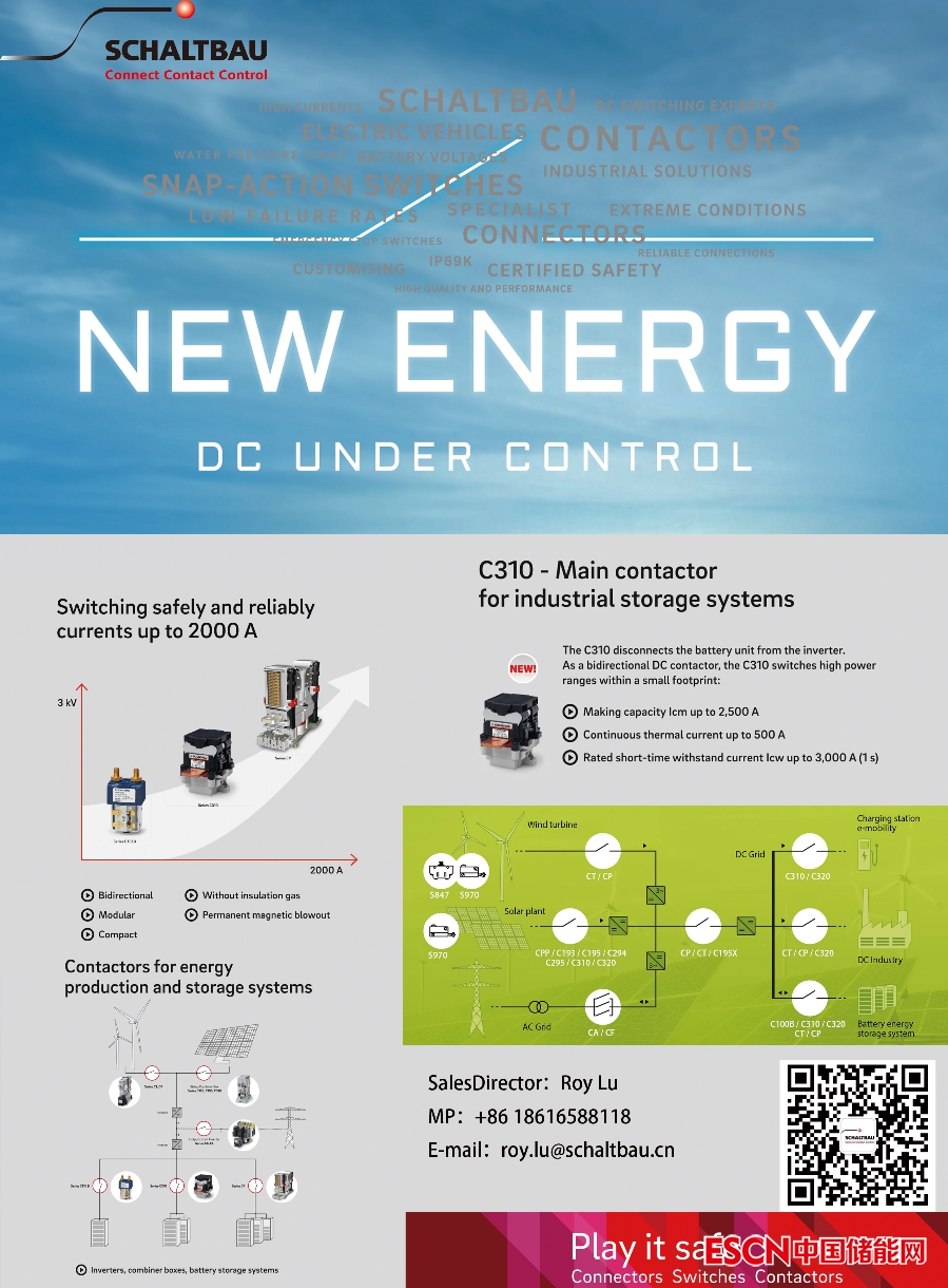 沙爾特寶針對(duì)儲(chǔ)能市場(chǎng)推出C300系列專用高壓直流接觸器,該系列接觸器可在1500V/500A的系統(tǒng)中輕松使用。