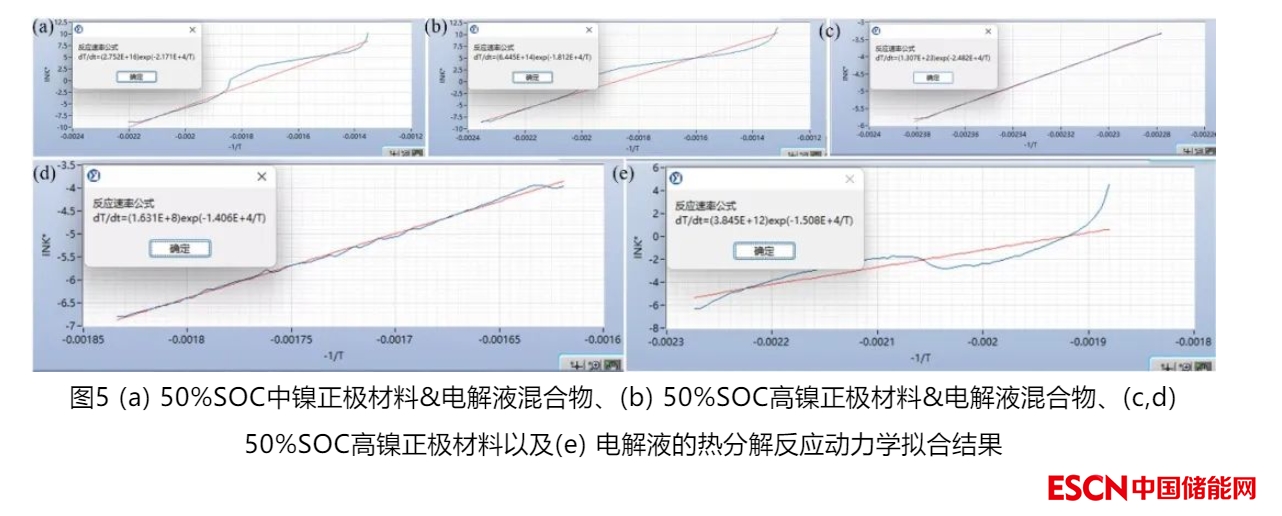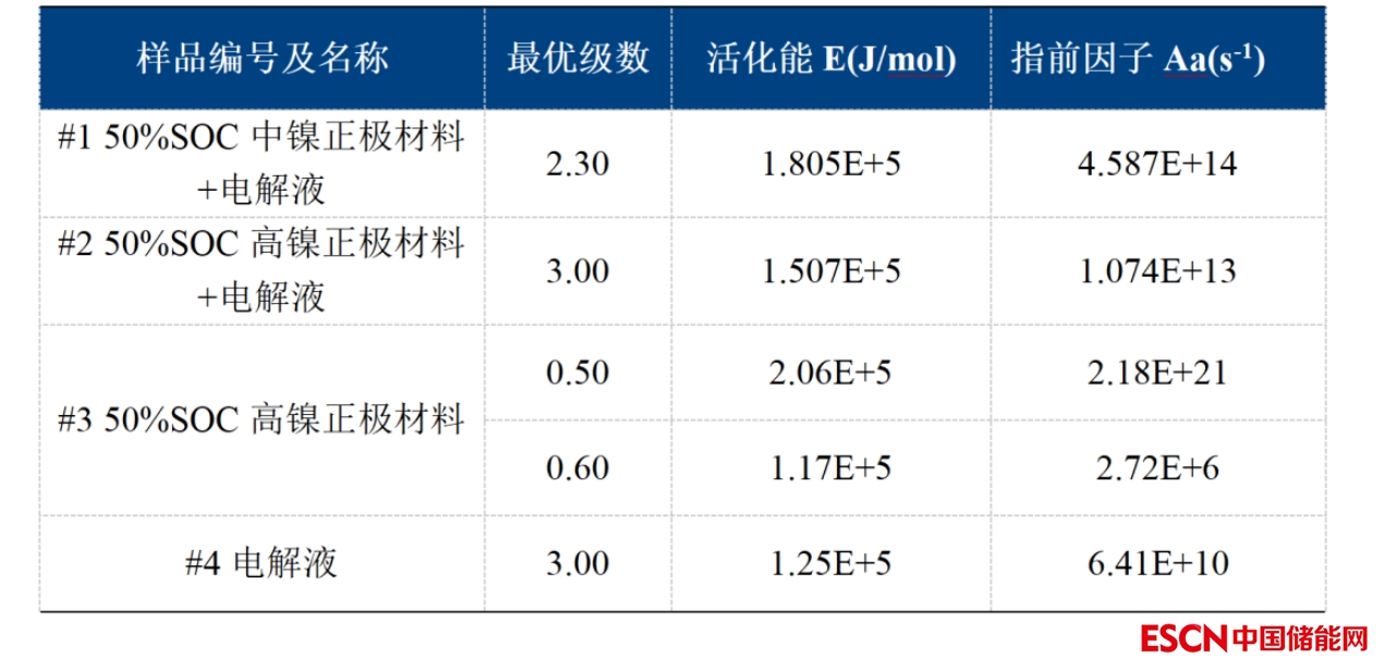 本文利用絕熱加速量熱儀經典的HWS模式測定了電池材料的熱分解反應特征參數,并基于阿倫尼烏斯方程擬合得到了反應動力學參數。相關結果有助于電池設計和系統(tǒng)熱仿真,改進電池系統(tǒng)的熱安全性能。