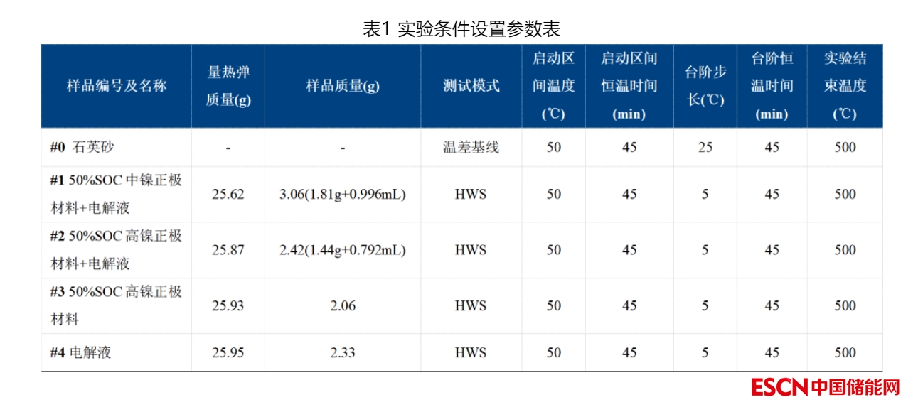 實驗樣品:50%SOC中鎳正極材料、50%SOC高鎳正極材料、電解液(EC+DMC+LiPF6)。