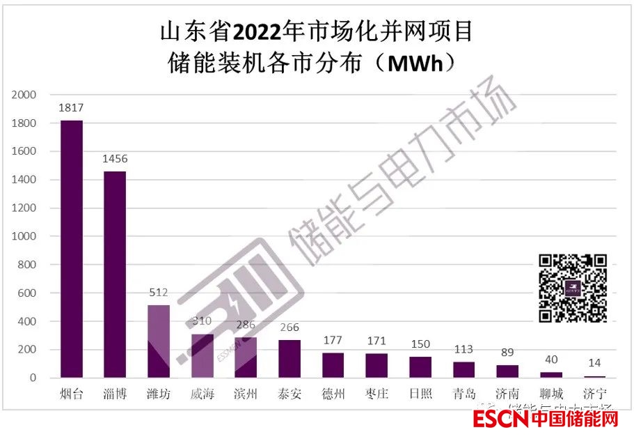 從地域分布來(lái)看,煙臺(tái)的光伏項(xiàng)目裝機(jī)及對(duì)應(yīng)的儲(chǔ)能配置需求最大,分別2.27GW和0.91GW/1.82GWh。淄博以1.85GW光伏配套0.73GW/1.46GWh儲(chǔ)能緊隨其后。