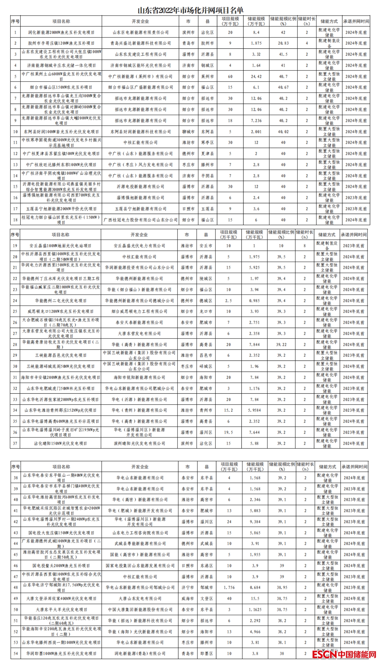山東省2022年市場化并網(wǎng)項目名單如下: