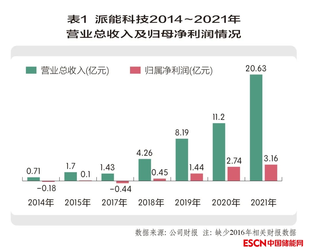 2021年派能科技實現(xiàn)營收20.63億元,歸屬上市公司股東凈利潤為3.16億元,連續(xù)6年實現(xiàn)同比增長(表1)。2022年前三季度,公司營收為35.68億元,同比增長175.62%;歸母凈利潤為6.45億元,同比增長156.52%。對于營收增長,派能科技表示主要是因為公司募投項目的部分產(chǎn)線建成投產(chǎn),產(chǎn)能大幅釋放使得公司產(chǎn)銷量大幅增長。今年前三季度,派能科技的產(chǎn)品銷售量為2203MWh,同比增長128%,銷售量的上漲是營業(yè)收入增加的主要原因。