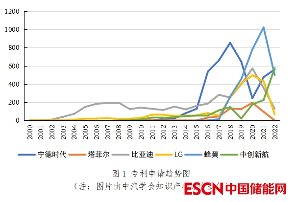 當(dāng)下,發(fā)力較早的動(dòng)力電池企業(yè)已經(jīng)在專利布局中搶占先機(jī)。據(jù)中汽學(xué)會(huì)知識(shí)產(chǎn)權(quán)分會(huì)提供的數(shù)據(jù),寧德時(shí)代自2015年之后,動(dòng)力電池相關(guān)專利申請(qǐng)量迅速增長(zhǎng),2018年達(dá)到頂峰后有所回落,2020年起,伴隨電池材料及結(jié)構(gòu)創(chuàng)新,專利申請(qǐng)量恢復(fù)增長(zhǎng)趨勢(shì)。而比亞迪、LG、蜂巢能源、中創(chuàng)新航、塔菲爾也在2015年至今迎來(lái)了專利布局的大爆發(fā)。