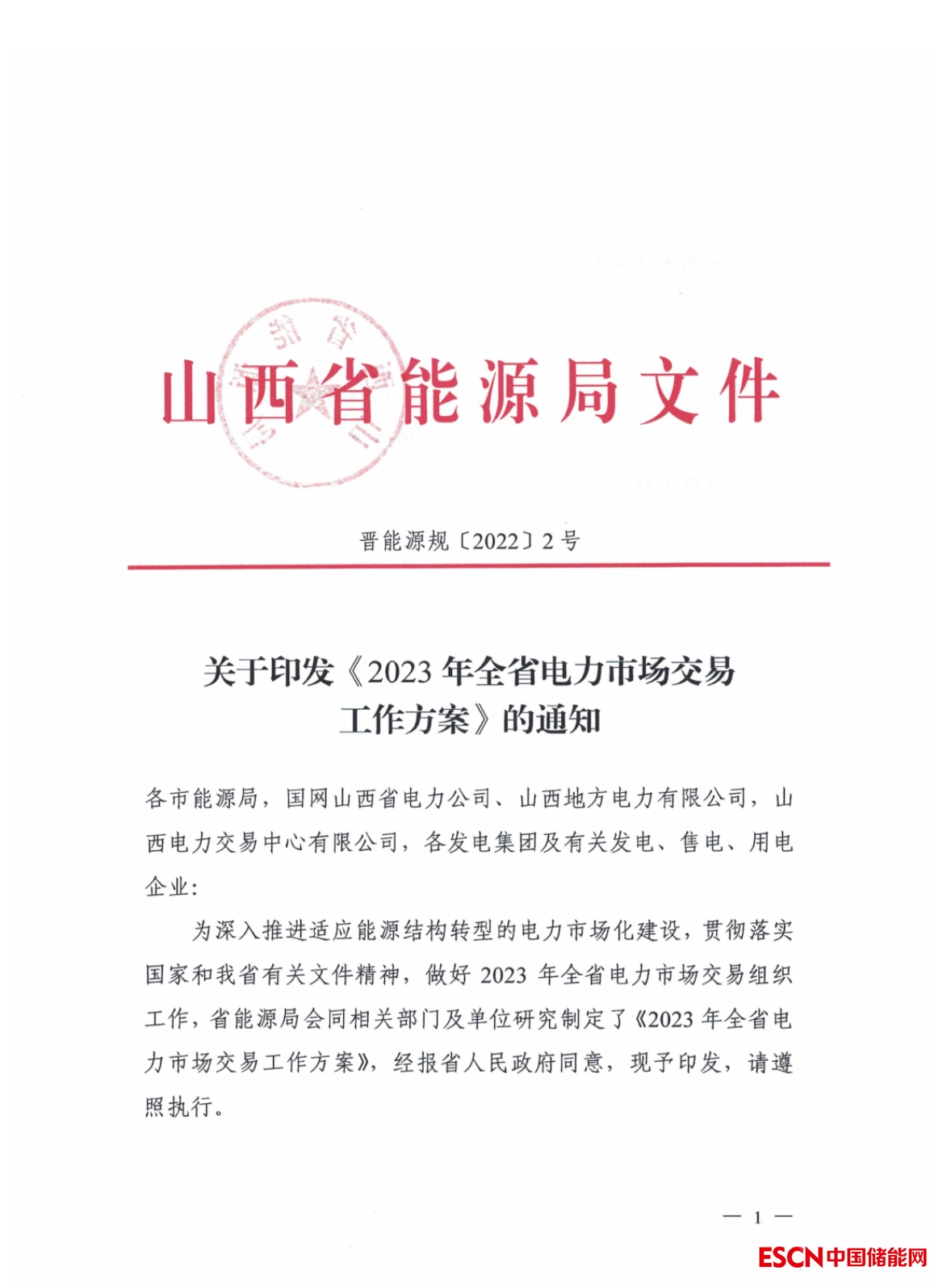 中國(guó)儲(chǔ)能網(wǎng)訊:近日,山西省能源局印發(fā)了《2023年全省電力市場(chǎng)交易工作方案》(以下簡(jiǎn)稱《方案》)?!斗桨浮吩敿?xì)說(shuō)明了2023年電力市場(chǎng)交易規(guī)模、市場(chǎng)主體、市場(chǎng)安排等,提出了要優(yōu)化各類市場(chǎng)的銜接、落實(shí)消納責(zé)任權(quán)重制度等。