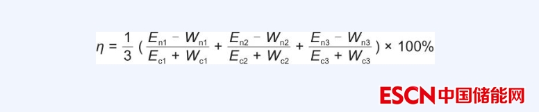 (3)重復(fù)以上步驟3次,記錄每次充放電能量Ec、En和輔助能耗Wc、Wn,按照以下公式計(jì)算能量轉(zhuǎn)換效率η:
