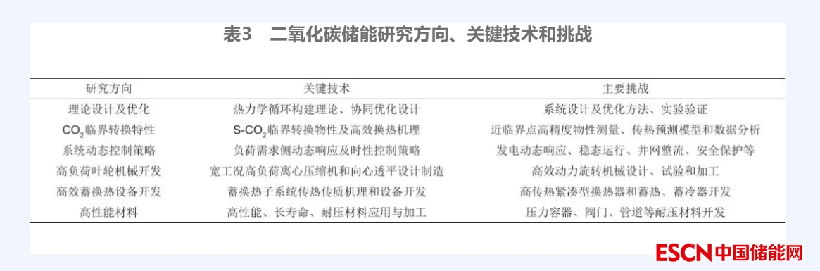 作為一種較前沿的物理儲(chǔ)能技術(shù),二氧化碳儲(chǔ)能在熱力學(xué)循環(huán)構(gòu)建理論、CO2臨界轉(zhuǎn)換特性、系統(tǒng)動(dòng)態(tài)運(yùn)行控制策略、關(guān)鍵設(shè)備設(shè)計(jì)開(kāi)發(fā)和高性能材料選擇等方面需要攻克的關(guān)鍵技術(shù)還有許多,也面臨著諸如設(shè)備加工制造、系統(tǒng)應(yīng)用等技術(shù)挑戰(zhàn),如表3所示。
