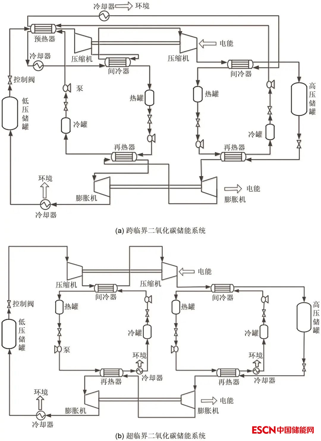 2.2 跨臨界二氧化碳儲(chǔ)能(TC-CES)和超臨界二氧化碳(SC-CES)儲(chǔ)能系統(tǒng)