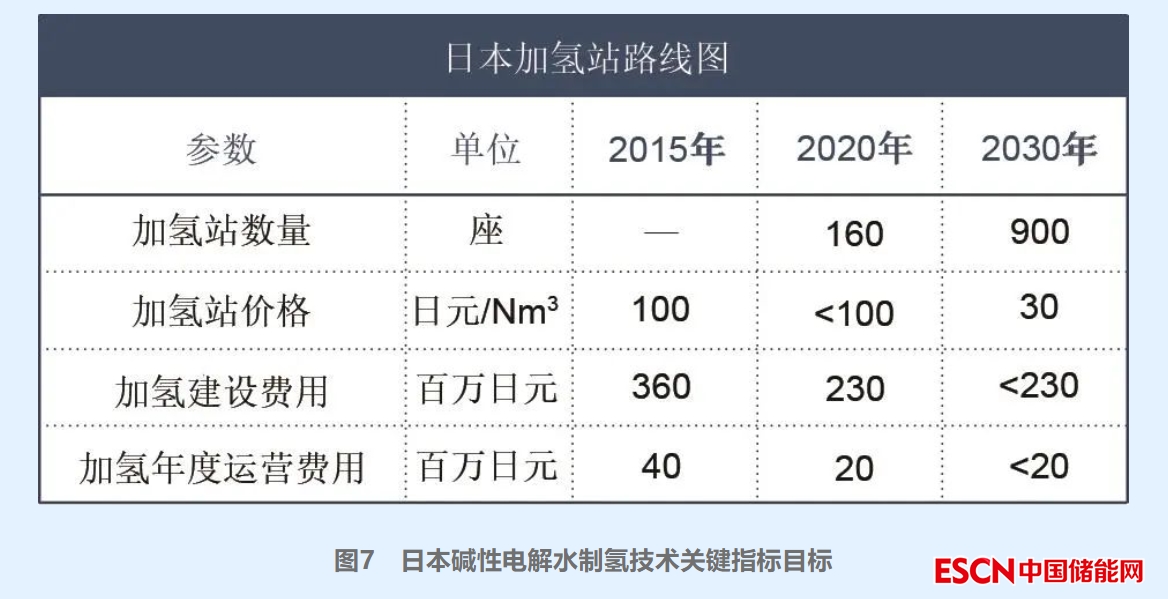 日本在《氫能基本計(jì)劃》中設(shè)定了一系列加氫站經(jīng)濟(jì)性目標(biāo),如圖7所示,計(jì)劃2030年氫氣供應(yīng)價(jià)格降至30 日元/Nm3,單個(gè)加氫站建設(shè)費(fèi)用低于2.3 億日元,年付運(yùn)營費(fèi)用低于2000 萬日元,并在《能源基本計(jì)劃》等頂層設(shè)計(jì)文件下推動(dòng)加氫站建設(shè)與技術(shù)突破,使得日本加氫站建設(shè)數(shù)量一度位居全球前列。為了實(shí)現(xiàn)在2020年代末期實(shí)現(xiàn)加氫站技術(shù)的完全自主化,日本以NEDO為核心開展了加氫站監(jiān)管改革、降低加氫站成本、國際合作三方面的工作。主要的技術(shù)突破點(diǎn)有加氫站遠(yuǎn)程操控系統(tǒng)與風(fēng)險(xiǎn)評(píng)估、新型電化學(xué)壓縮機(jī)研發(fā)、較高溫度下氫氣加注方法的研發(fā)等。