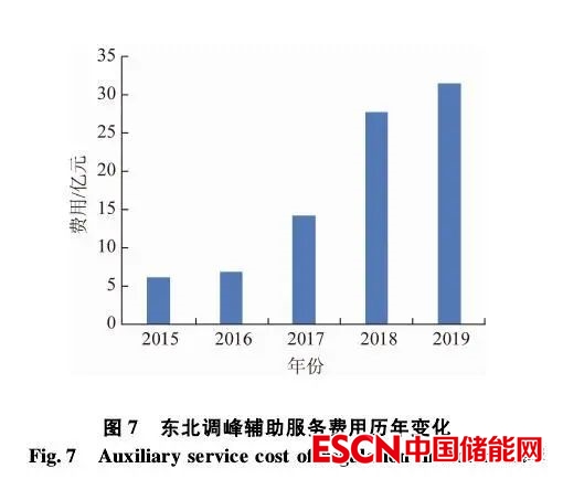 調(diào)峰輔助服務(wù)市場已成為目前刺激火電靈活性改造最主要的市場要素,市場規(guī)模不斷擴大。一方面,市場范圍由初期的東北帝王擴展到東北、山西、福建、山東、新疆、寧夏、甘肅、廣東等8個試點,并將在全國各省區(qū)全面鋪開。另一方面,市場交易電量與費用隨著可再生能源接入比例的升高而出增加,圖7給出了東北調(diào)峰輔助服務(wù)費用的歷年變化,調(diào)峰輔助費用的規(guī)模由初期的5億元左右上升至2019年的30多億元。許多電廠的盈利模式發(fā)生了根本轉(zhuǎn)變,靈活性改造收入占比迅速攀升,一些第三方投資主體也通過合同能源管理,甚至獨立調(diào)峰主體等方式參與其中。