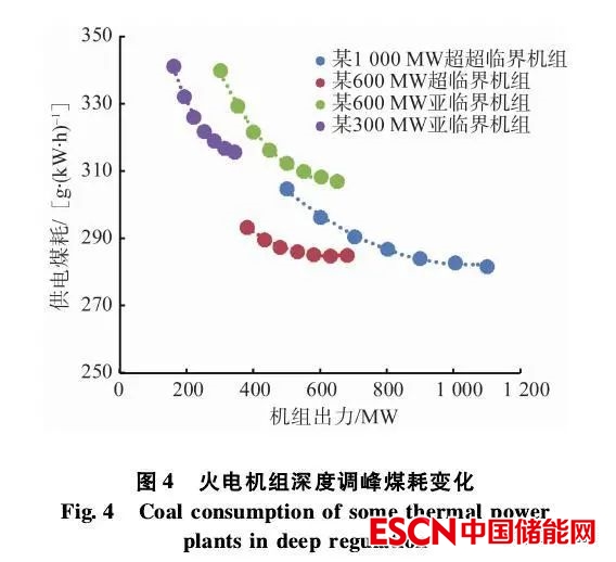 其次,靈活性改造的目標(biāo)是開展深度調(diào)峰。因此,深度調(diào)峰成本是潛在的可變成本,包括增加的燃料成本、廠用電、設(shè)備運行維護成本及由于長時間深度調(diào)峰和大范圍負荷率變動引起的設(shè)備壽命減損、加速更換成本等。其中,隨著調(diào)峰深度的增加,火電機組的供電煤耗將明顯增加,特別是進入深度調(diào)峰區(qū)間后,供電煤耗增速進一步加快,如圖4所示。同時,也可以看出,火電機組由于設(shè)計參數(shù)、技術(shù)流派、定態(tài)選擇等方面的差異,深度調(diào)峰帶來的供電煤耗增量也有所不同。