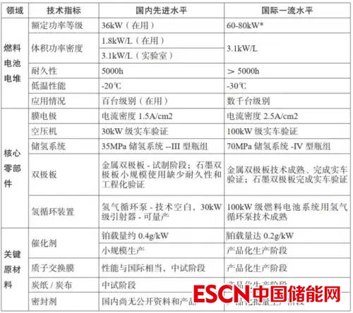 國(guó)內(nèi)外質(zhì)子交換膜燃料電池系統(tǒng)技術(shù)指標(biāo)對(duì)比