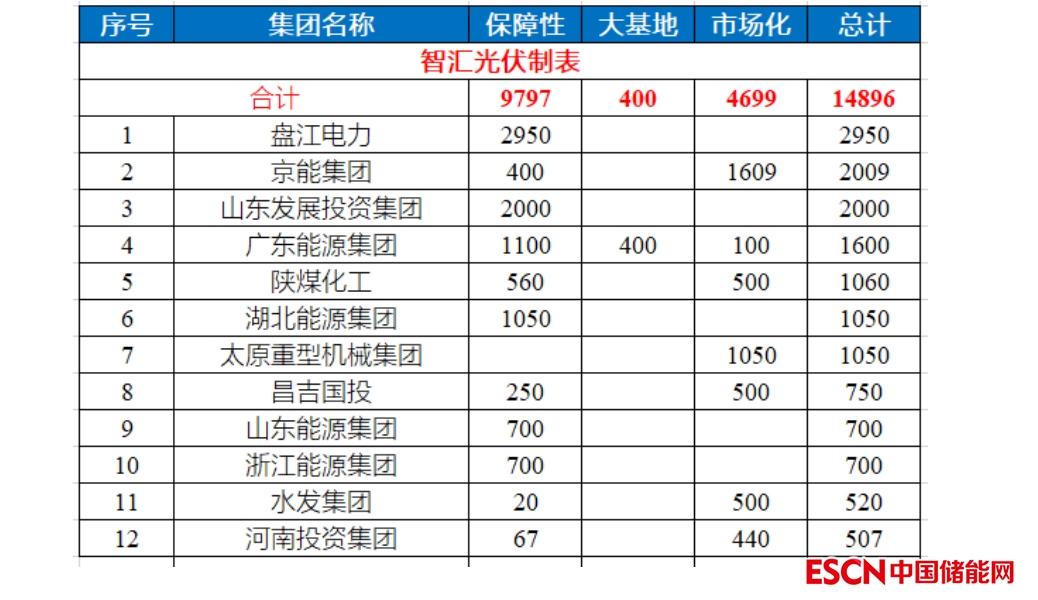 廣東能源集團、陜煤化工、湖北能源集團、太原重型機械集團,均獲得超過1GW的項目。其他企業(yè)情況如下表所示。