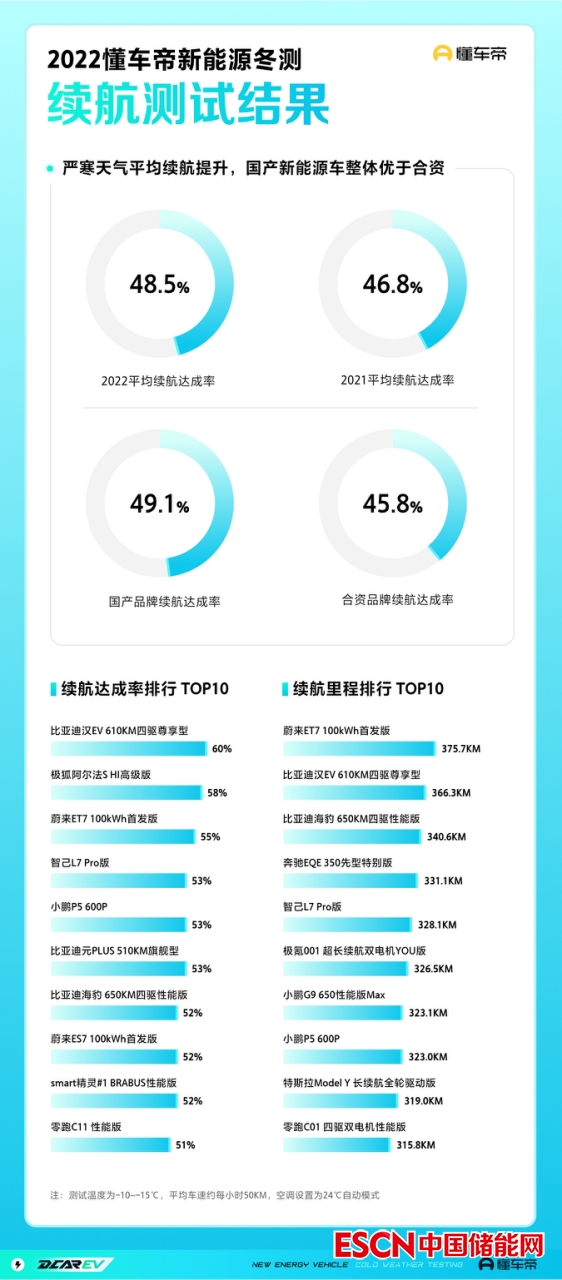 盡管平均實(shí)際續(xù)航達(dá)成率還不到50%,但懂車帝方面向中國新聞周刊表示,2022年的測(cè)試結(jié)果已經(jīng)比2021年有一定提升了。