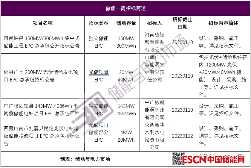 中國儲能網(wǎng)訊:近一周,儲能項(xiàng)目招投標(biāo)依然較為活躍,涉及安徽、西藏、山西、河南等多個(gè)省份。包括儲能項(xiàng)目的送出工程、工程監(jiān)理、EPC總承包等多種類型。