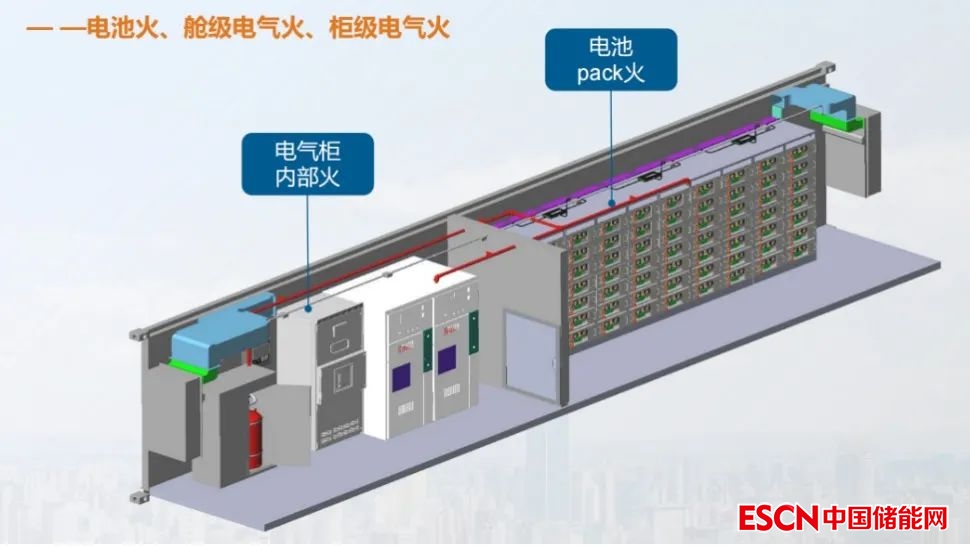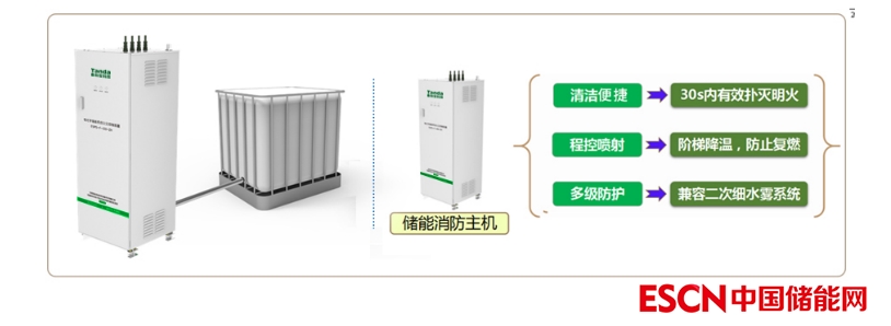 電化學儲能系統(tǒng)火災抑制方案以“早發(fā)現(xiàn)、早處置”為原則,對儲能艙內(nèi)鋰電池熱失控初級階段進行超前探測預警,并精準多次點噴抑制處理艙內(nèi)火災,將火災撲滅在萌芽階段。