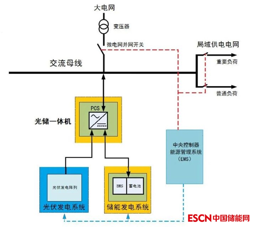 圖:采用光儲一體機的直流耦合工商業(yè)儲能系統(tǒng)