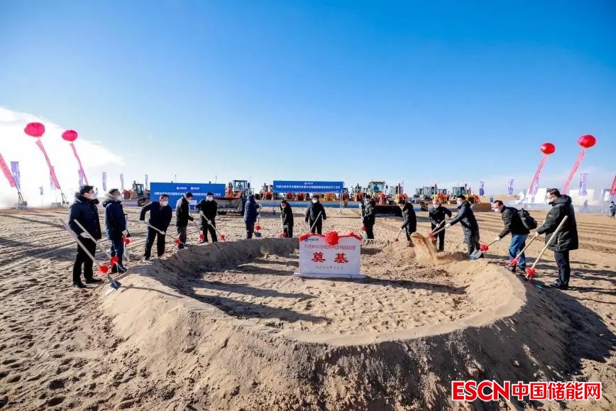 內(nèi)蒙古庫布齊沙漠鄂爾多斯中北部新能源基地項(xiàng)目開工現(xiàn)場(三峽能源供圖)