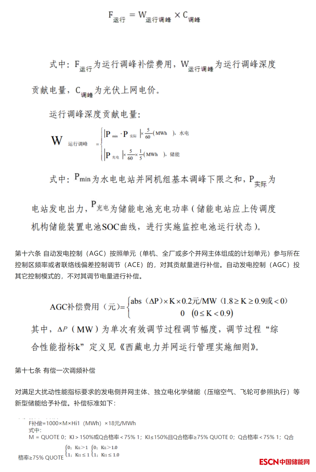第十五條有償調(diào)峰服務(wù)補(bǔ)償,在調(diào)峰困難時(shí)段(11:00-16:00),水電站發(fā)電出力低于并網(wǎng)機(jī)組基本調(diào)峰下限之和的,按低于并網(wǎng)機(jī)組基本調(diào)峰下限之和的少發(fā)電量給予補(bǔ)償;儲(chǔ)能電站按調(diào)峰困難時(shí)段(11:00-16:00)所儲(chǔ)存的電量的一定比例給予補(bǔ)償。