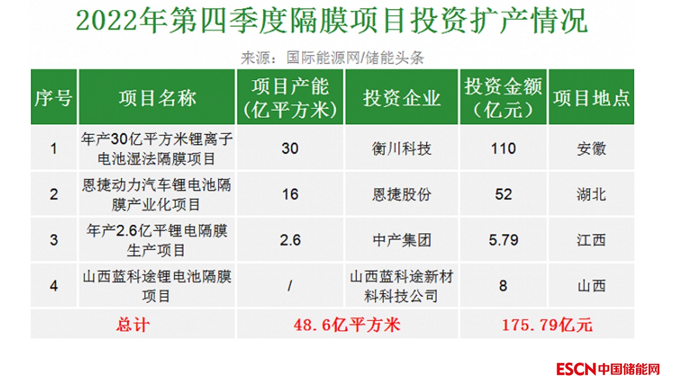 進入2022年,鋰電池隔膜領域的投資熱度依舊不減,衡川科技、恩捷股份、中產(chǎn)集團等產(chǎn)業(yè)鏈企業(yè)接連落地新項目,投資總額超175億元。