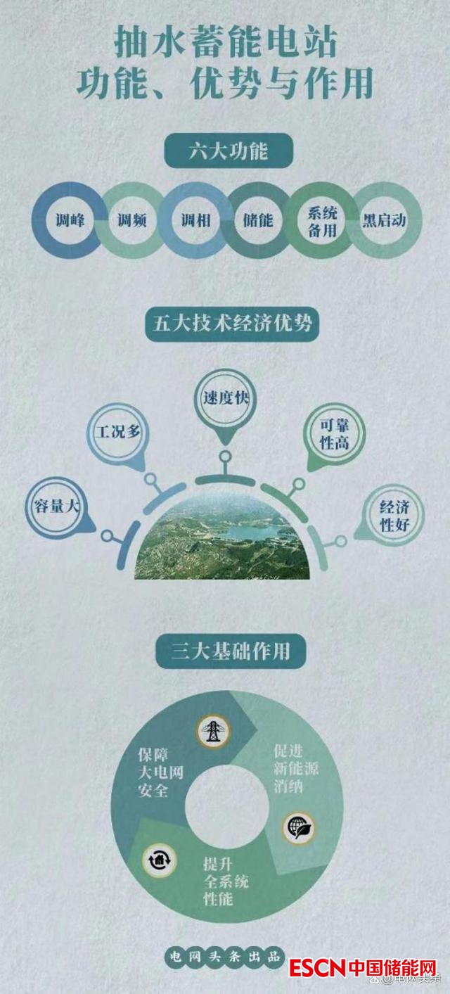 它具有調(diào)峰、調(diào)頻、調(diào)相、儲(chǔ)能、系統(tǒng)備用、黑啟動(dòng)等6大功能和容量大、工況多、速度快、可靠性高和經(jīng)濟(jì)性好等5大技術(shù)經(jīng)濟(jì)優(yōu)勢,在保障大電網(wǎng)安全、促進(jìn)新能源消納、提升全系統(tǒng)性能等方面發(fā)揮重要作用。