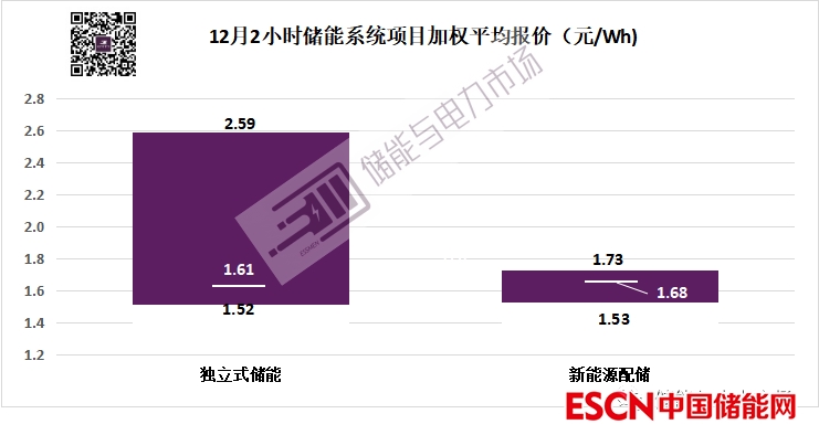 獨立式儲能項目加權(quán)平均報價為1.61元/Wh;
