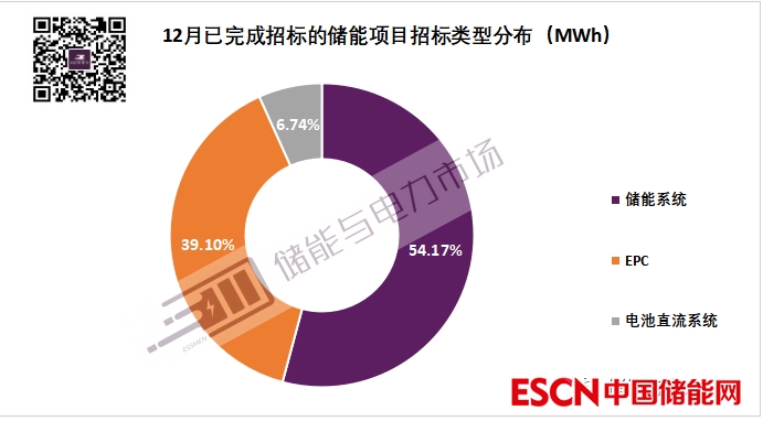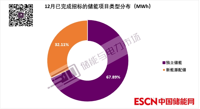 12月招投標(biāo)市場由獨立式儲能和新能源配儲二分天下。