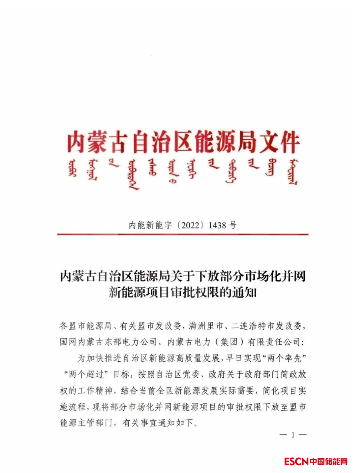 中國(guó)儲(chǔ)能網(wǎng)訊:12月29日,內(nèi)蒙古自治區(qū)能源局發(fā)布了《內(nèi)蒙古自治區(qū)能源局關(guān)于下放部分市場(chǎng)化并網(wǎng)新能源項(xiàng)目審批權(quán)限的通知》,將部分市場(chǎng)化并網(wǎng)新能源項(xiàng)目的審批權(quán)限下發(fā)至盟市能源主管部門。