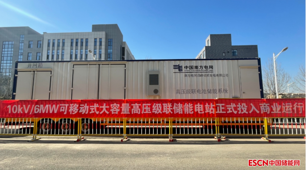 中國儲能網(wǎng)訊:1月1日,由南方電網(wǎng)儲能股份有限公司投資建設的我國首個移動式大容量高壓級聯(lián)電池儲能電站(10kV/6MW),在河北保定正式投入商業(yè)運行。